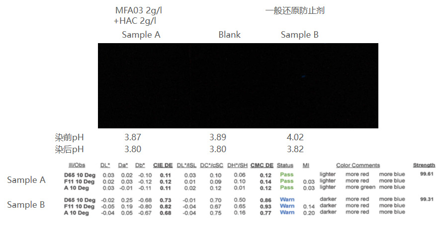 本助劑之功能:(用量:2.0g/l+HAc 1.0g/l)